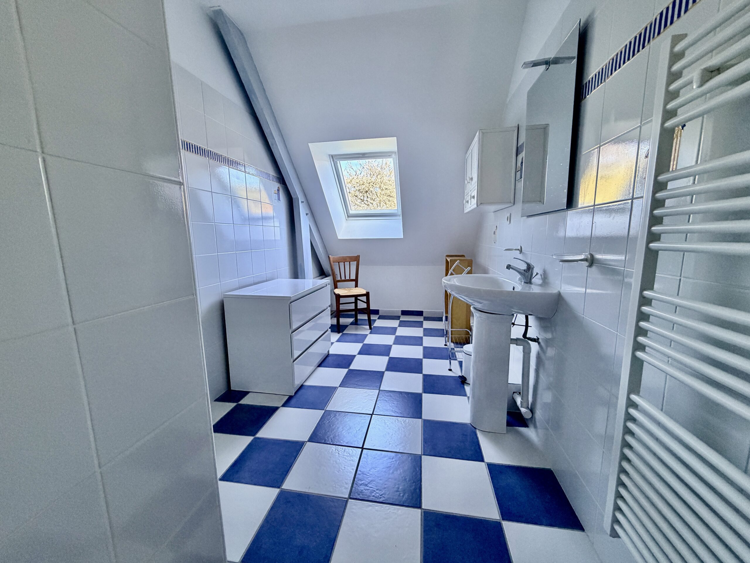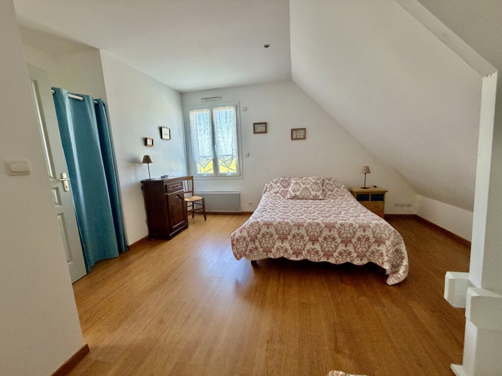À l’étage, un bel espace mezzanine de 17 m² (parfait coin détente ou télétravail), trois chambres confortables, une salle de bains, un toilettes, un grenier offrant un fort potentiel d’aménagement en 5ème chambre