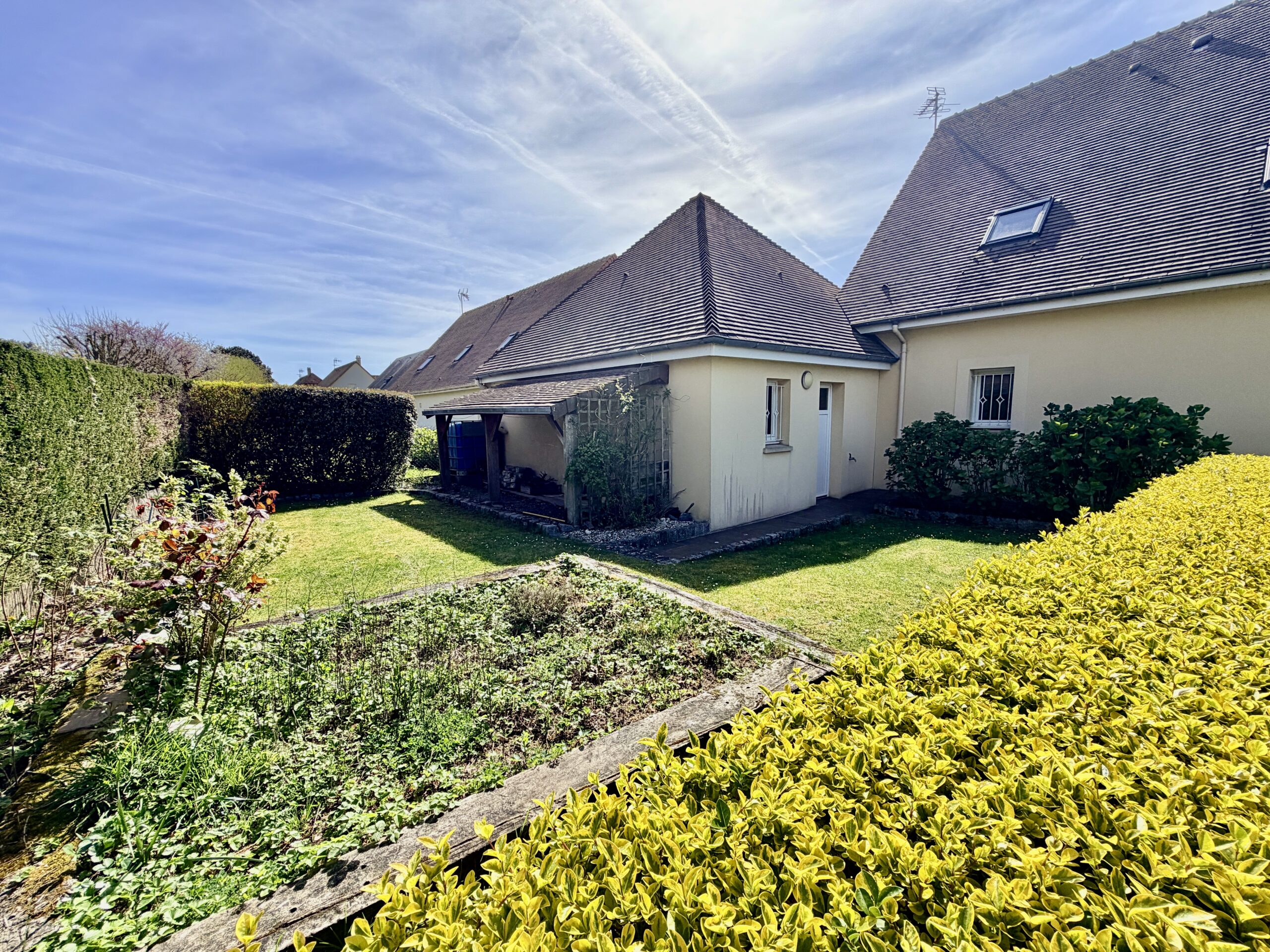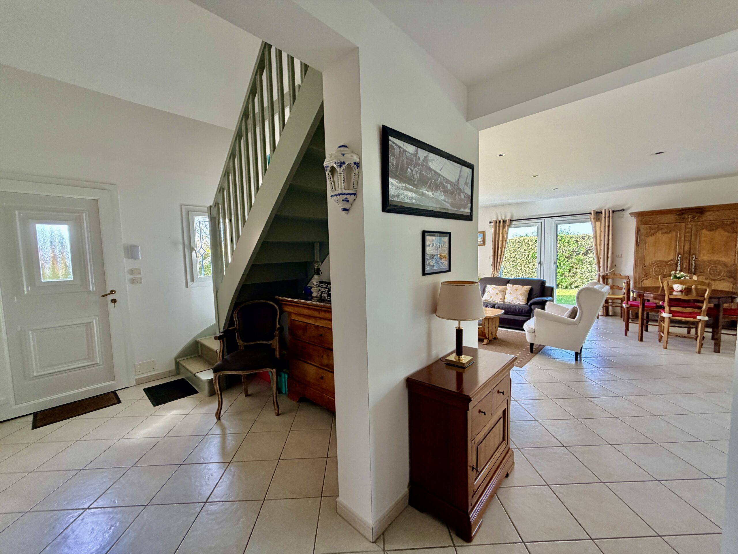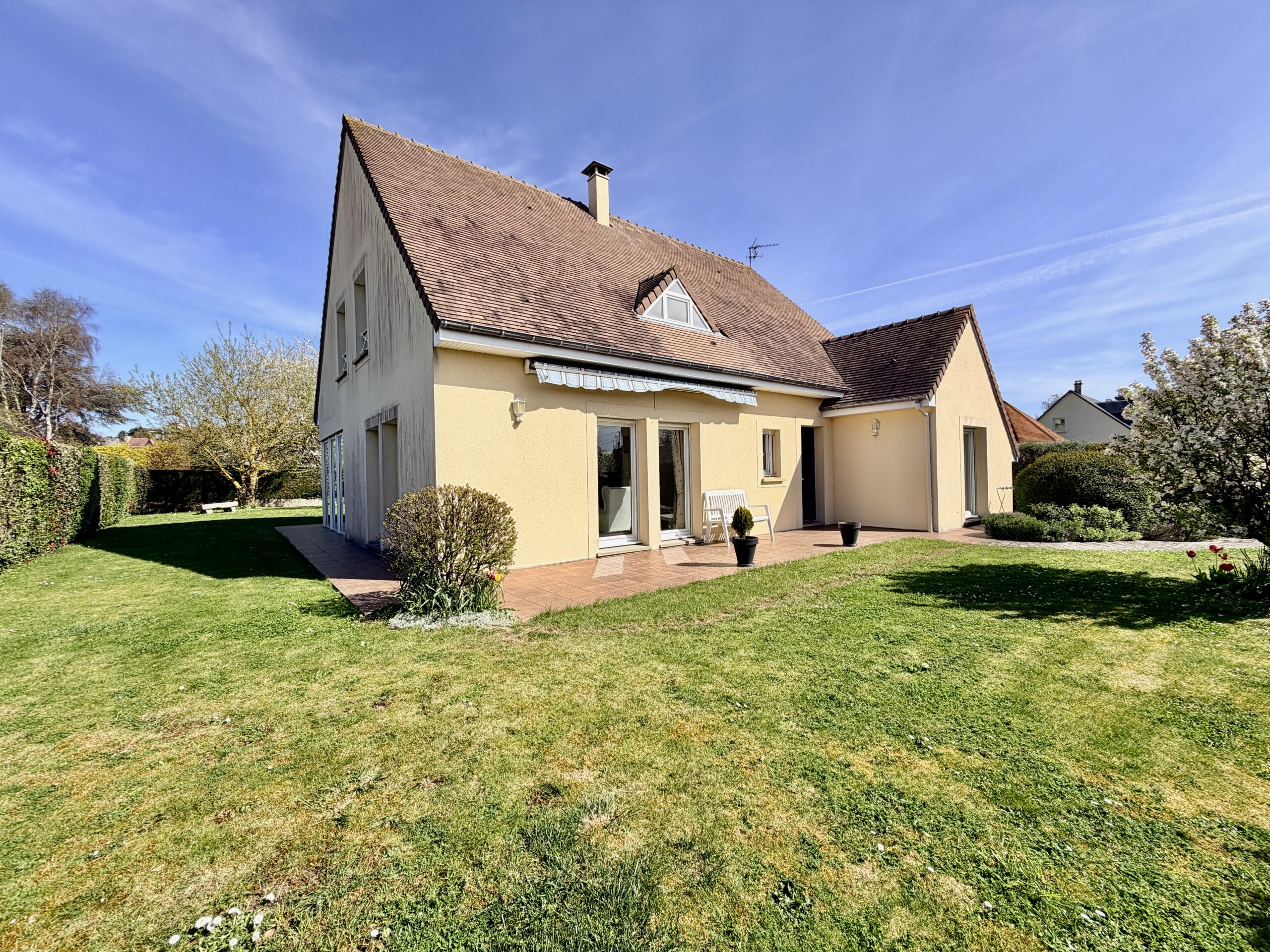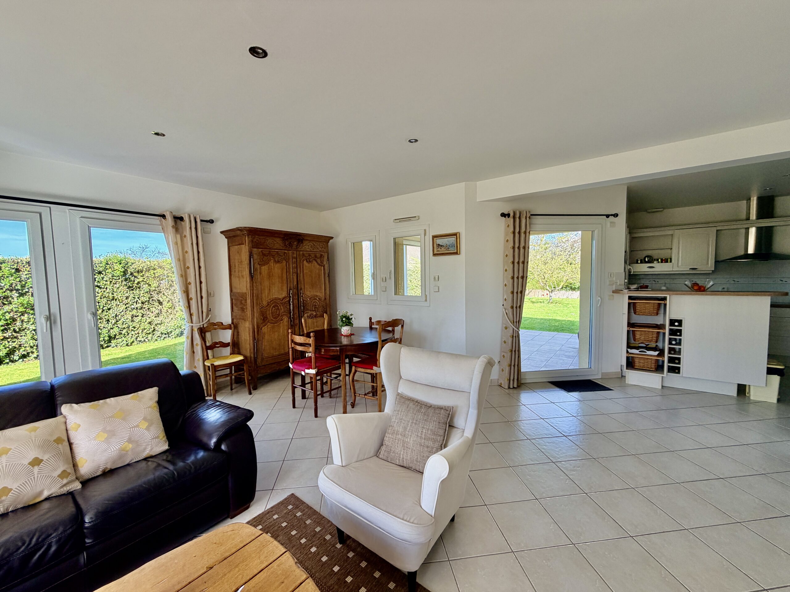 À seulement 1 km de la plage et à 8 minutes de Deauville, découvrez cette belle maison familiale de 180 m², construite en 2006, implantée sur un magnifique terrain plat, ensoleillé et soigneusement arboré de 790 m².